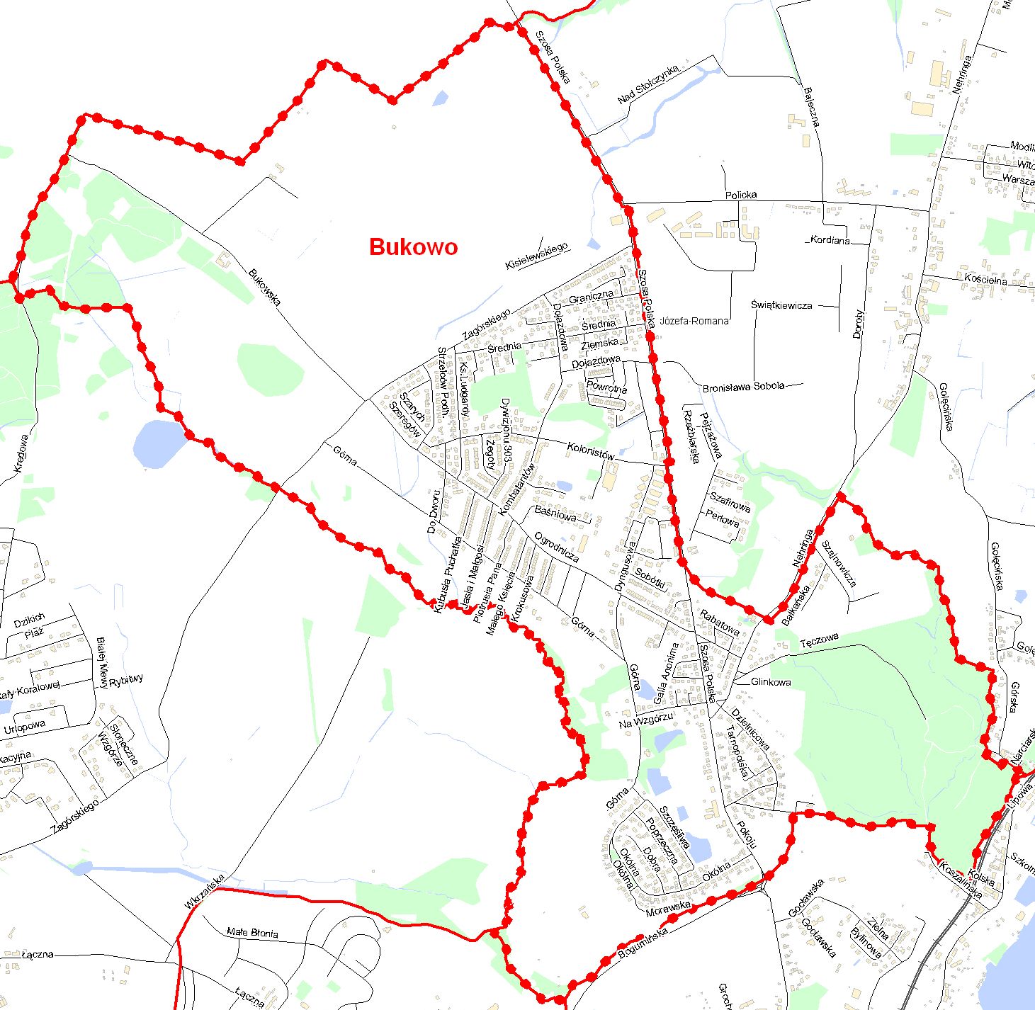 Der Ortsteil Bukowo wird von folgenden Siedlungen Szczecins begrenzt: