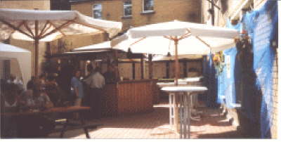 Der Weinstand war in einem Innenhof untergebracht, dadurch entstand die Atmosphäre eines “Buschenlokals” (siehe Bilder in der Fotogalerie).