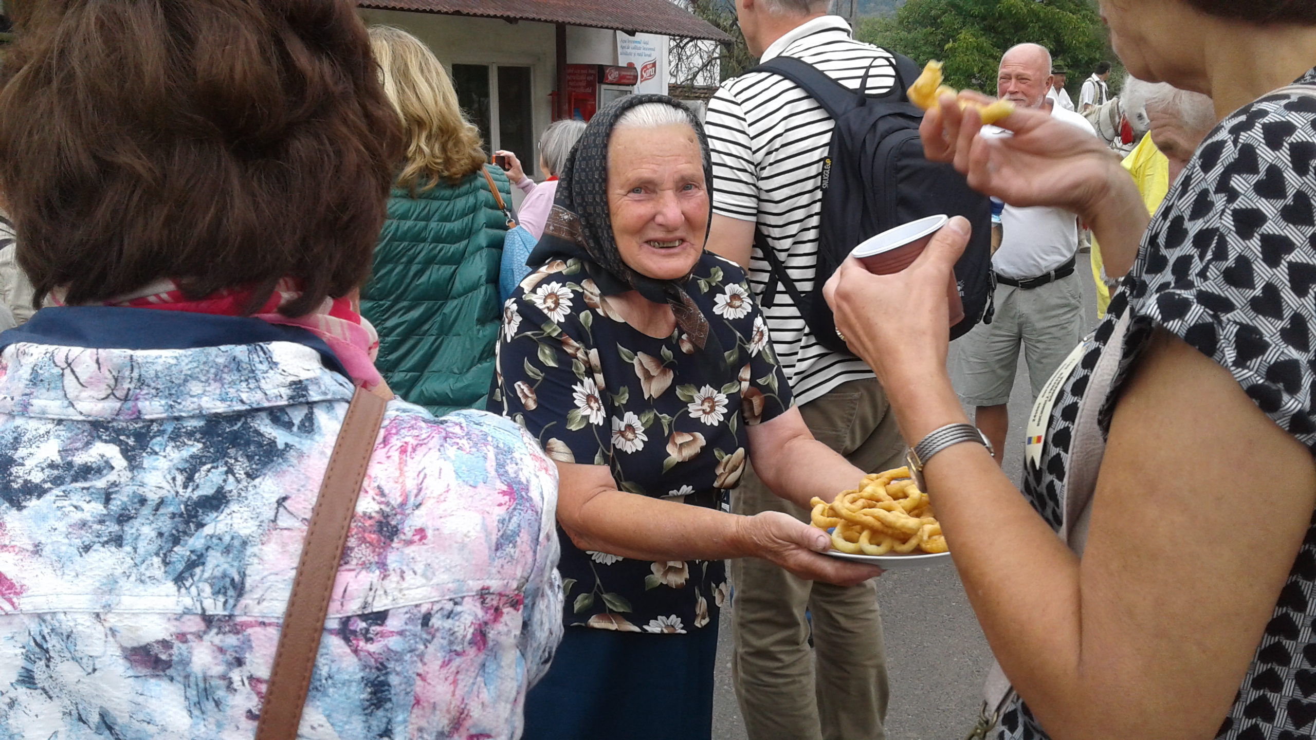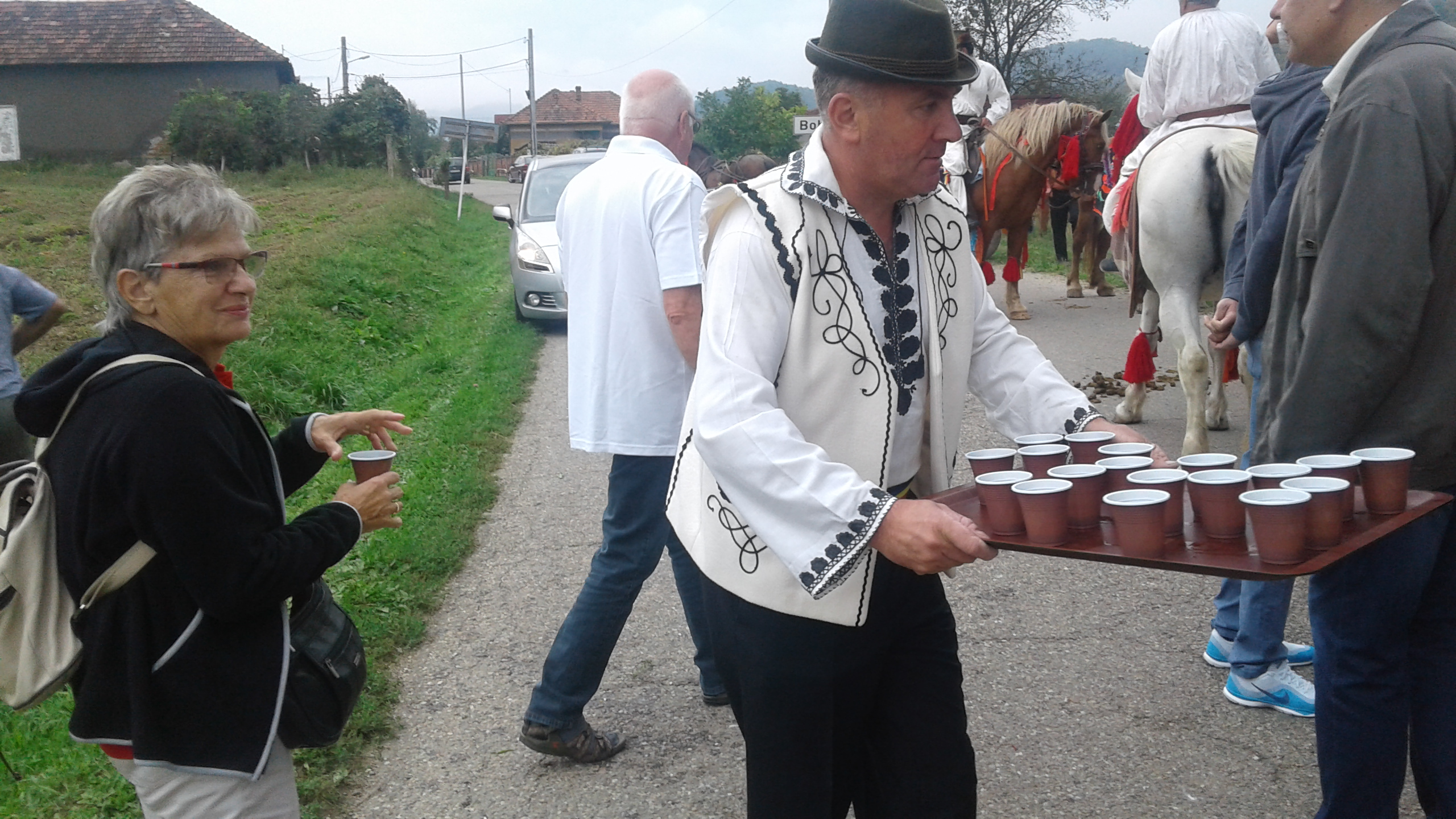 Anblick. Wir mussten aussteigen und wurden mit Zwetschgenschnaps begrüßt.