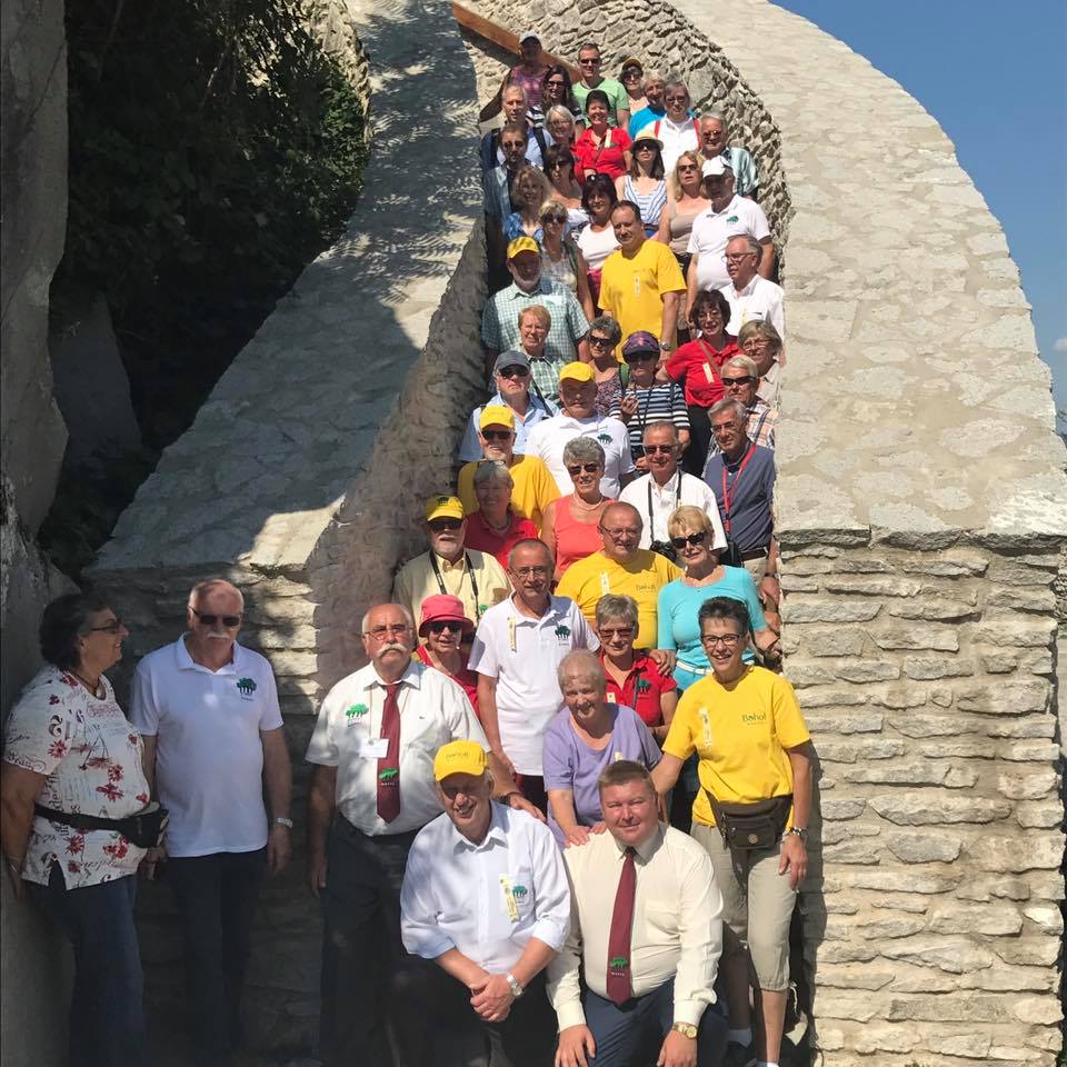 Ankunft am Gemeindehaus in Boholt mit dem landestypischen „Markt“. Gegen 13:00 Uhr ging es dann zum Mittagessen ins Restaurant „La Casuta“. Diesmal wurden wir auf der Terrasse bewirtet. Essen und Trinken waren wieder toll. Danach fuhren wir zurück nach Boholt. Zuerst ging es mit drei Trecker in den Wald zu einer Thermalquelle und einer 300 Jahre alten Eiche. ![]()
