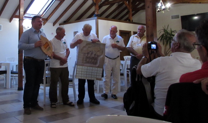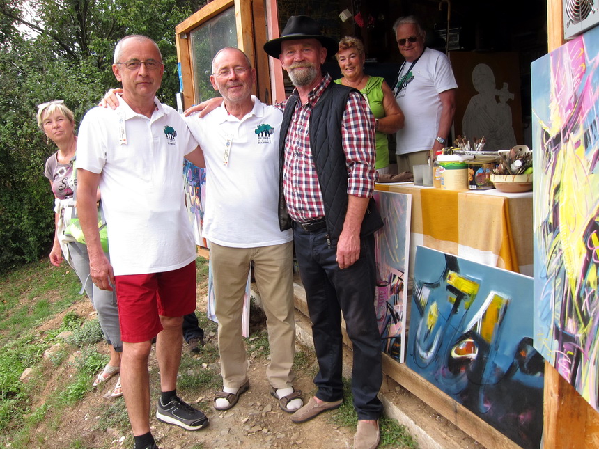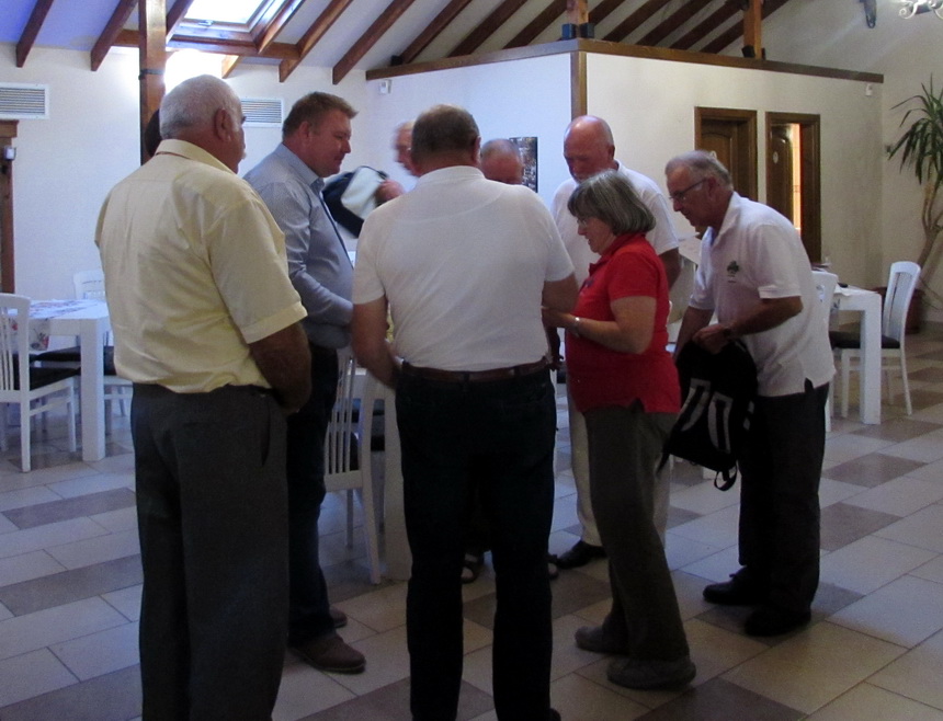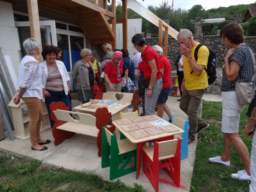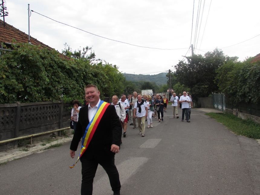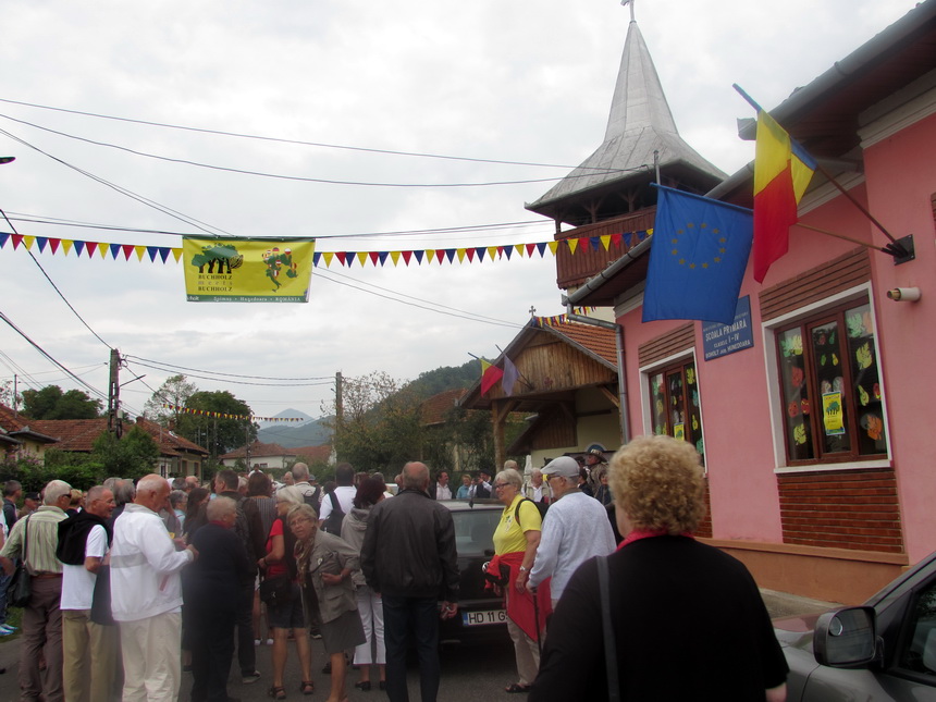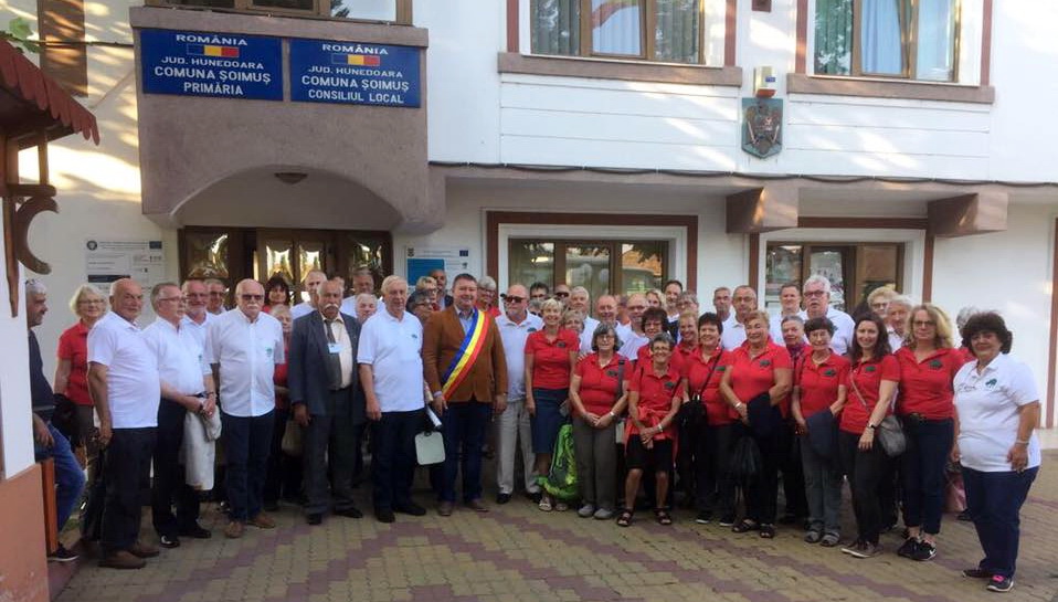 50 Rumänienreisende machten sich Freitagmittag auf dem Weg nach Deva. Nach dem Einchecken im Hotel zogen sich alle um, die Damen im roten Poloshirt mit dem Vereinsemblem und die Herren im weißen Poloshirt mit dem Vereinsemblem. Nun ging es per Bus weiter nach Soimus. Hier wurden wir vom Bürgermeister Irimie und vom Boholter Ioan Ruja empfangen.