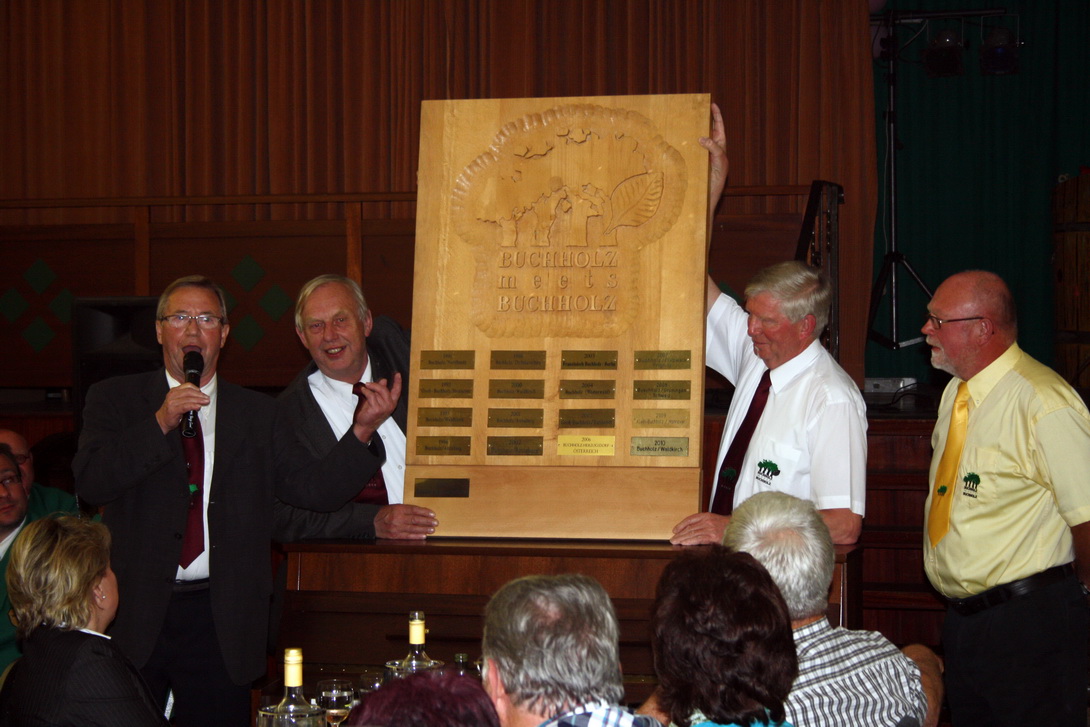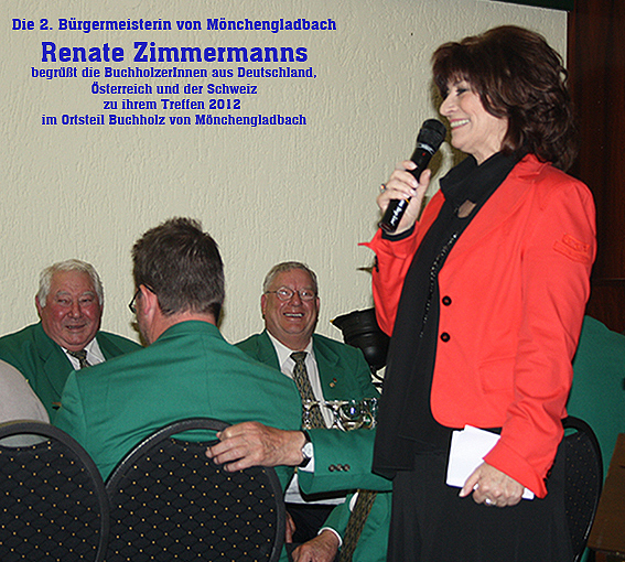 Helmut Mai begrüßte alle Gäste und wünschte ihnen weiterhin einen guten Verlauf des Treffen. Dann bedankte er sich bei Frau Zimmermanns und bat sie den besonderen Dank für die Unterstützung des Buchholz – Treffens an den OB zu überbringen. Da eine geplante Diaschau wegen technischer Schwierigkeiten nicht gezeigt werden konnte, stellte er die angereisten Gäste mit ihren Orten mündlich vor und beschrieb die geografische Lage und einige Frau Zimmermanns begrüße, auch im Namen des OB's, danach alle Buchholzer. Sie verzichtet auf ihre vorbereitet Rede und fand spontan die richtigen Worte für diesen Abend.