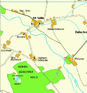 Ortsteile: Alt Tellin, Broock, Buchholz, Hohenbüssow, Neu Buchholz, Neu Tellin, Siedenbüssow
