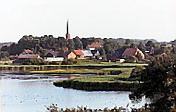 Die schon 1240 erwähnte Kirche als barocker Backsteinbau mit einem 45 m hohen Turm.