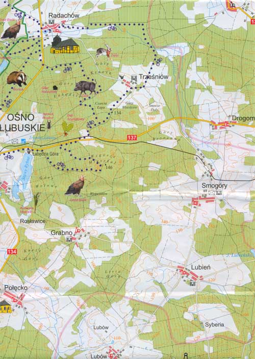 Grabno-Roslawice (Buchholz); Gronów (Grunow); Lubien (Lieben); Kochan (Linaberg); Osno Lubuskie (Drossen); Podosno (Karishöhe); Polecko (Polenzig); Radachów (Radach); Lipienica (Lippenze); Sienno (Seefeld); Smogóry (Schmagorei, 1936–1945 Treuhofen); Swiniary (Zweinert); Trzesniów (Klein Kirschbaum); Maiblumenstadt